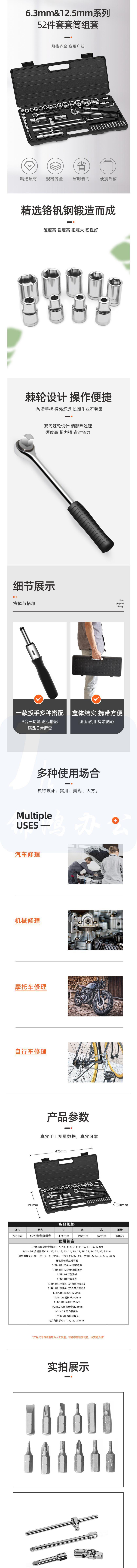拓为 套筒扳手组套工具52件套汽修快速棘轮扳手套筒工具箱维修拆卸 货号:JC