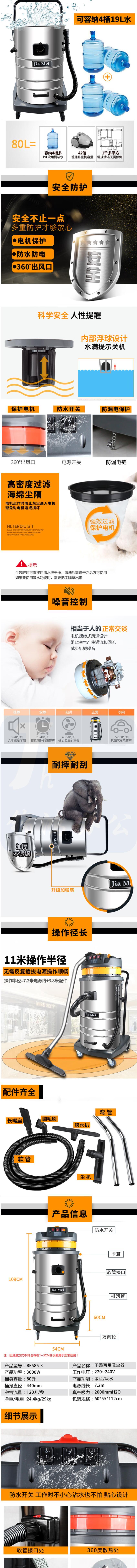 洁霸(JIEBA)嘉美BF585-3KW吸尘器干湿两用吸尘吸水机80升