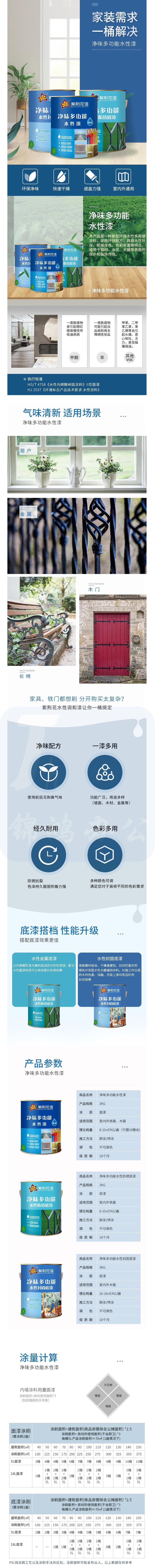紫荆花 净味多功能水性漆 10kg/桶 货号:JC