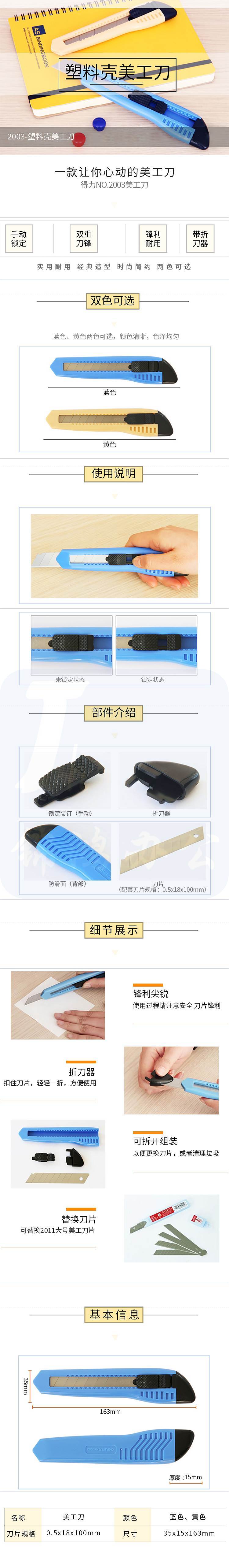 得力 2003 美工刀/裁纸刀 手动锁定 蓝色 (单位:把)