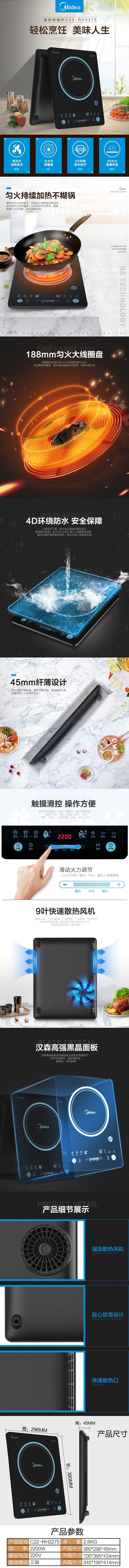 美的(Midea)电磁炉家用 电磁炉匀火触摸速热爆炒 RH2275