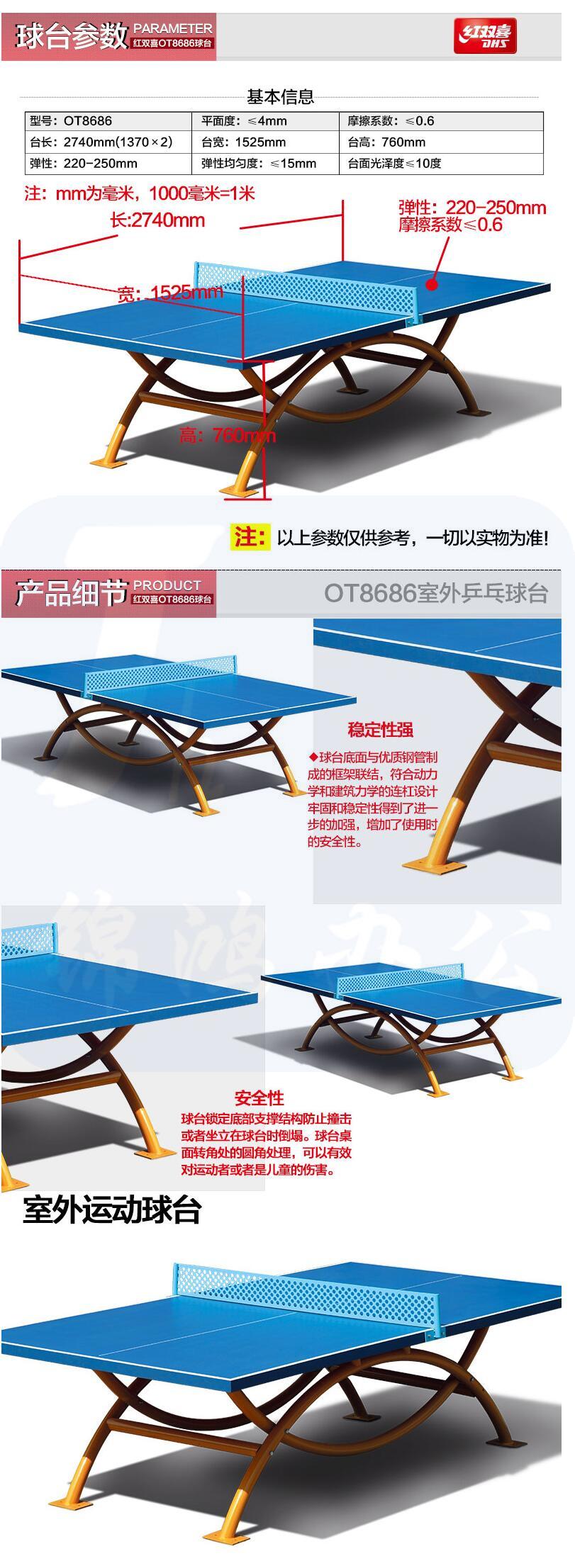 红双喜 乒乓球台OT8686 室外 双拱型 户外乒乓球桌