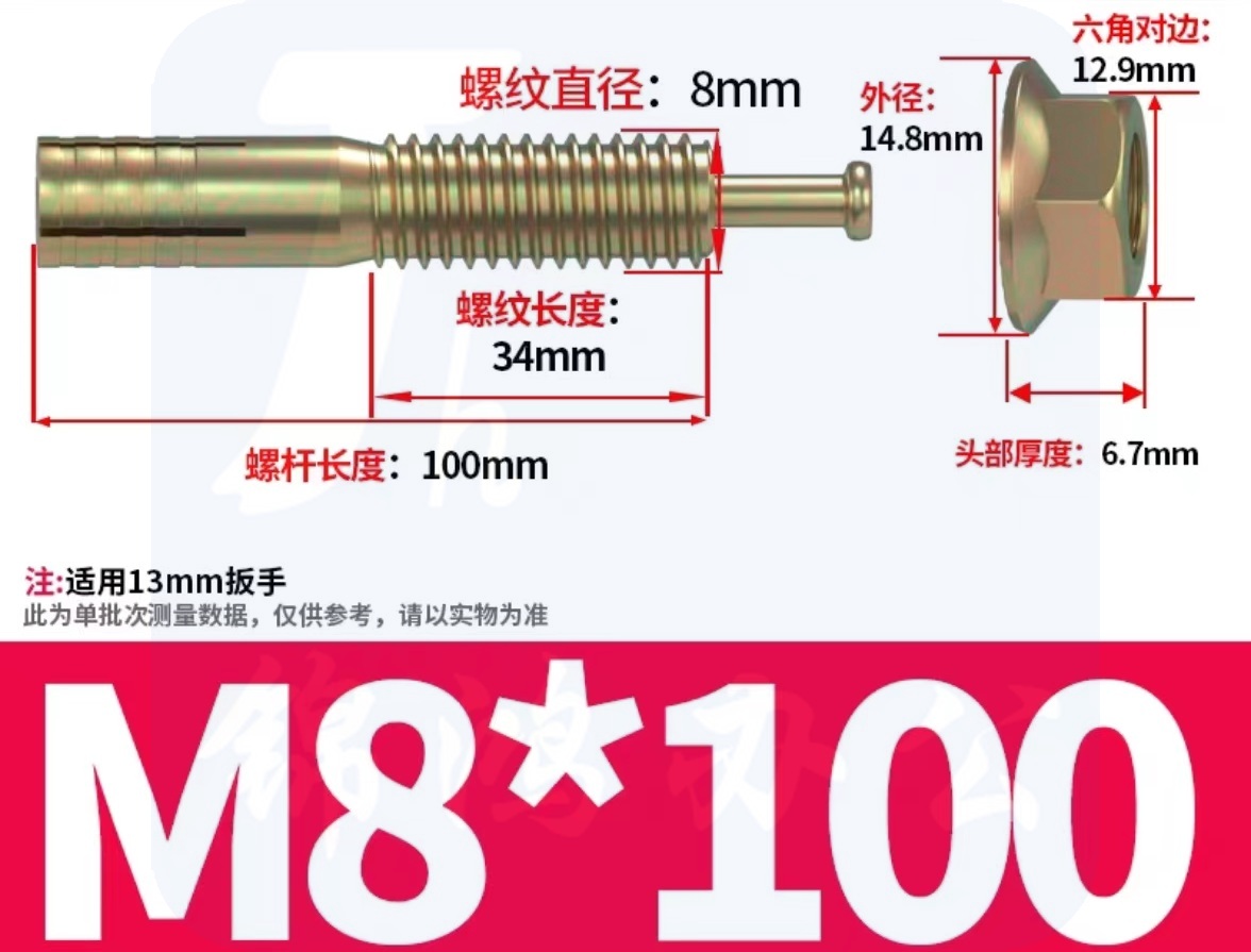 重型膨胀螺丝 M8*100 货号:JC