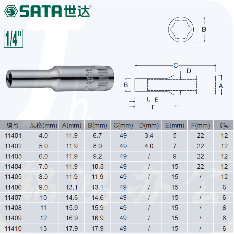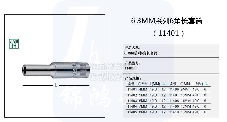 世达(SATA)6.3MM系列6角长套筒4MM 11401