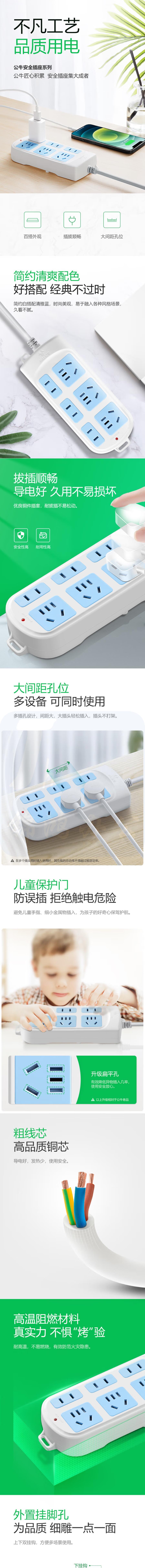 公牛 GN-102 6位全长1.8米移动插排 多功能插座排插多位插座