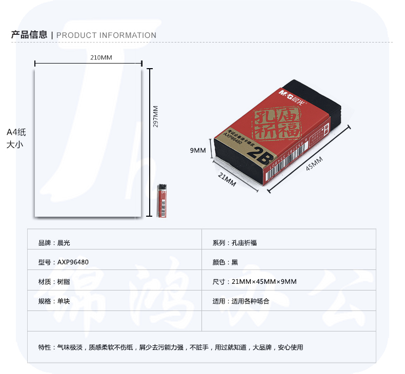 晨光 2B橡皮 橡皮擦45块装AXP96480