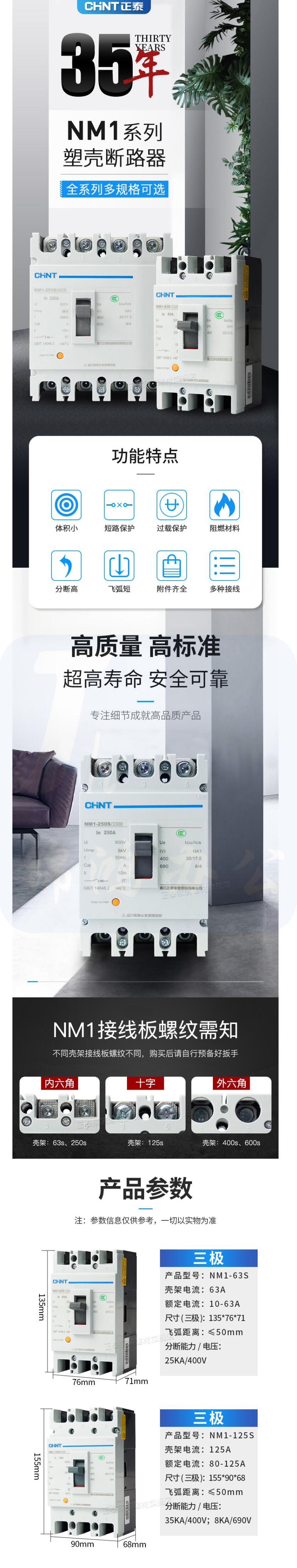 正泰 NM1-125S/3300-125A-G 塑壳断路器 3P空气开关