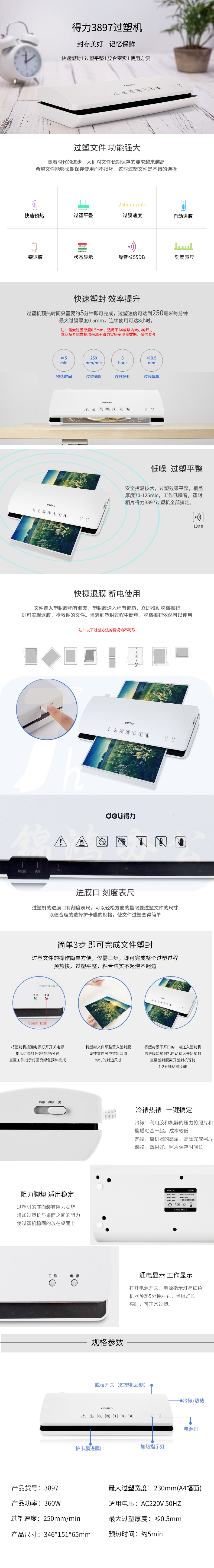 得力3897塑封机A4文件照片过膜机 过塑机