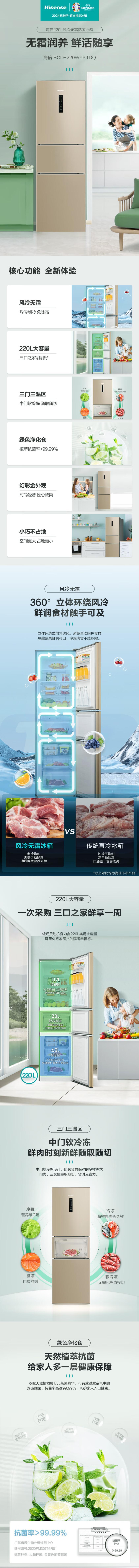 海信 220L 三开门冰箱无霜冰箱BCD-220WYK1DQ