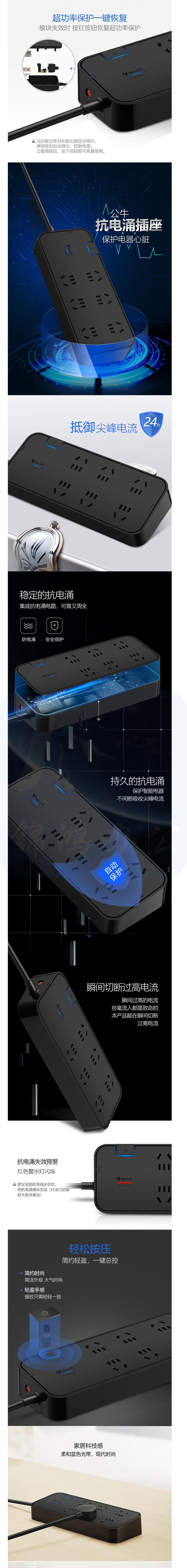 公牛 H306U USB接线板 3米