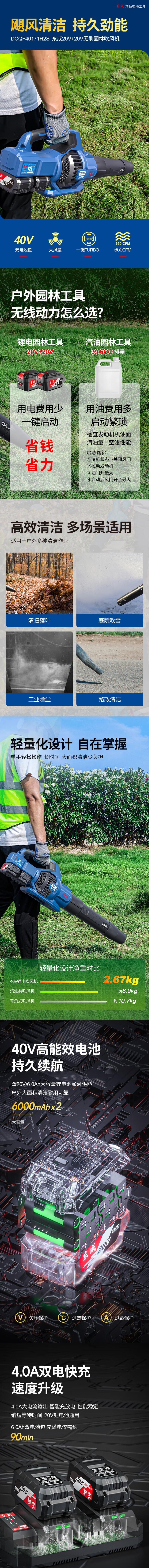 东成 锂电吹风机 DCQF40171H2S 充电式强力吹灰机20V6.0Ah双电池 吹尘器