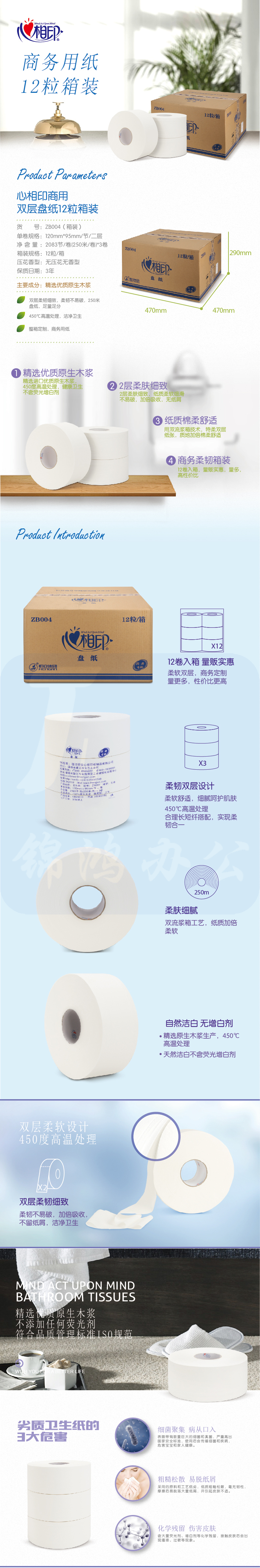 心相印 珍宝大盘纸 ZB004 12卷/箱 2层 250M/卷