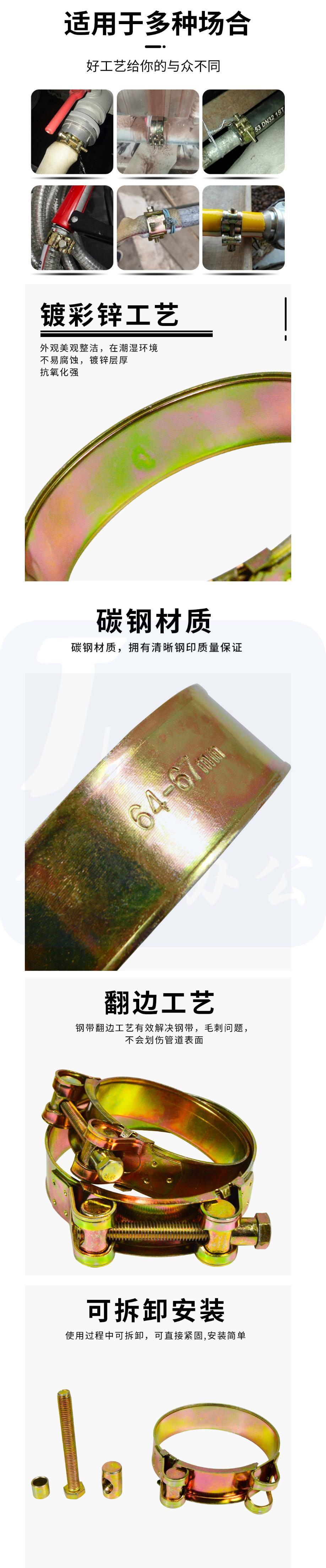 铁镀锌强力喉箍 重型卡箍 抱箍水 管卡子管箍 QL60-63 货号:JC
