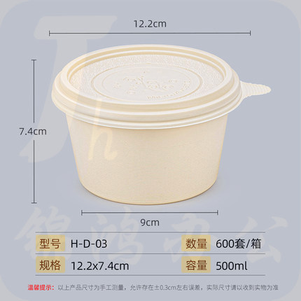 可降解餐盒 一次性圆形外卖盒打包盒 H03 500ml 600个/箱