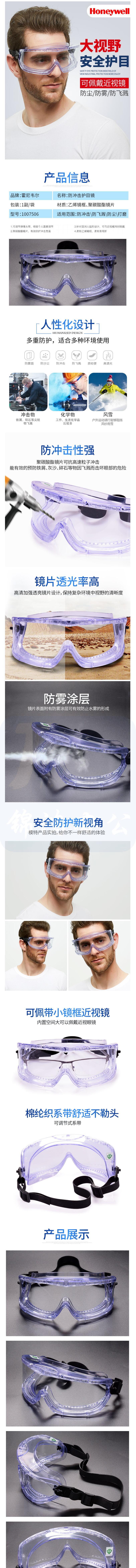 Honeywell/霍尼韦尔护目镜 聚醋酸酯防化镜片 防雾护目镜 橡胶头带 1007506