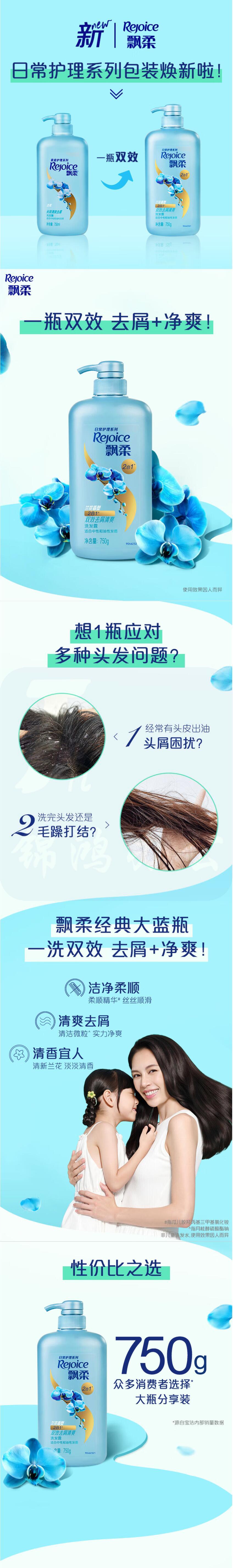 飘柔 兰花长效清爽去屑750ml 洗发水去屑洗发露