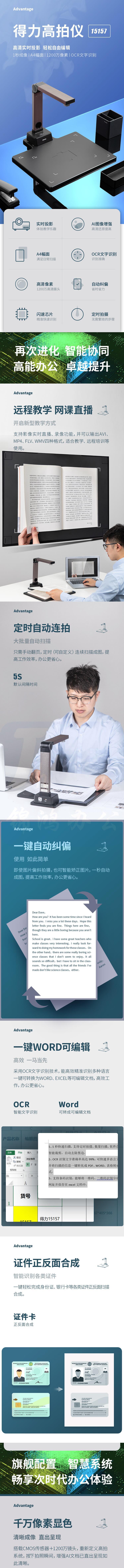 得力15157 高拍仪 1200万像素自动对焦A4幅面 高效商用办公文档证件保存 远程教学网课投影录像