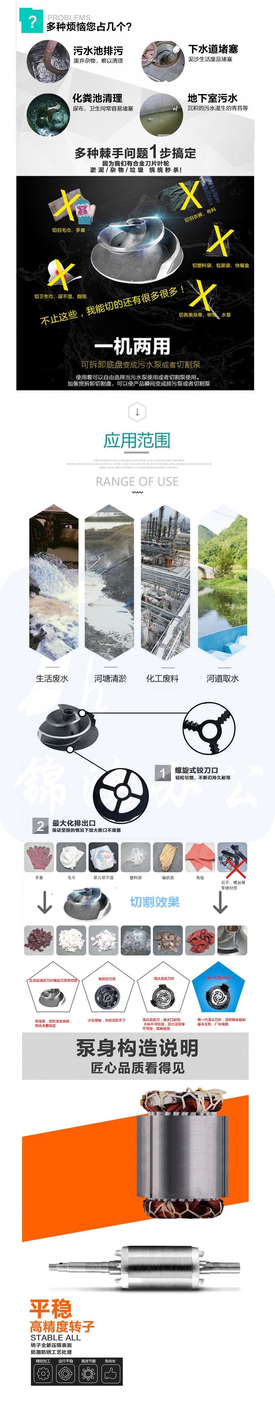 上海人民 80WQK40-15-3Kw 污水泵大流量抽水泵切割泵