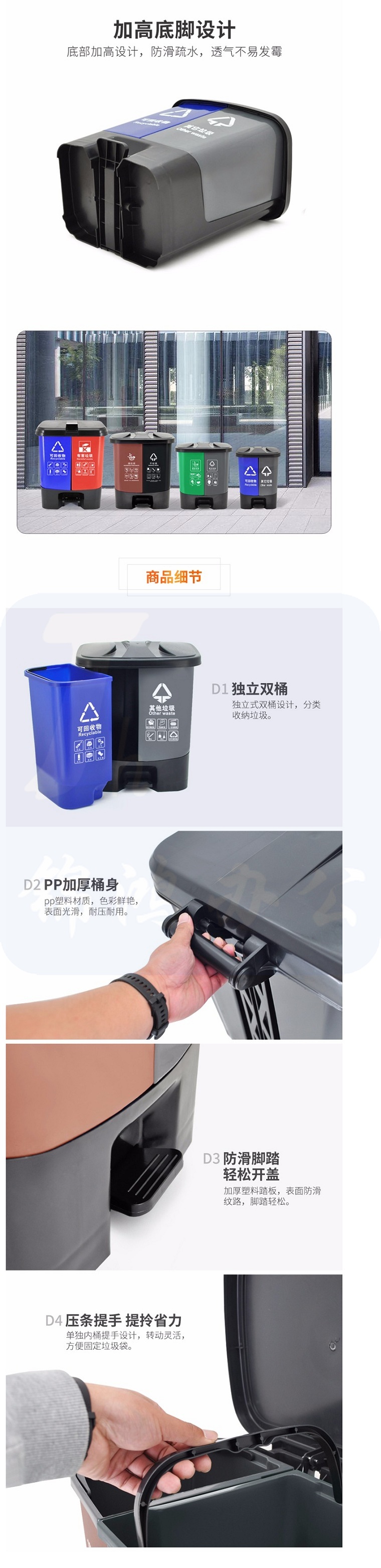 双牌 60L双桶 塑料内胆垃圾桶 800*400*950mm 蓝灰色 (计价单位:组)