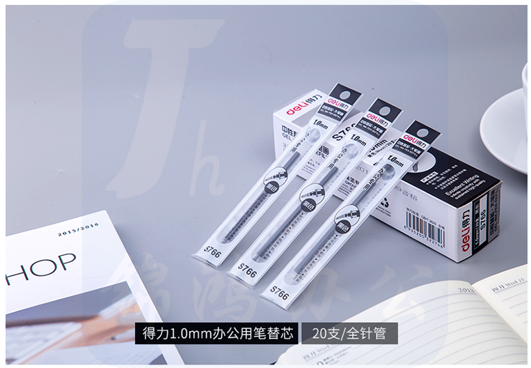 得力 S766 中性笔芯全针管 1.0mm 子弹头替芯 20支