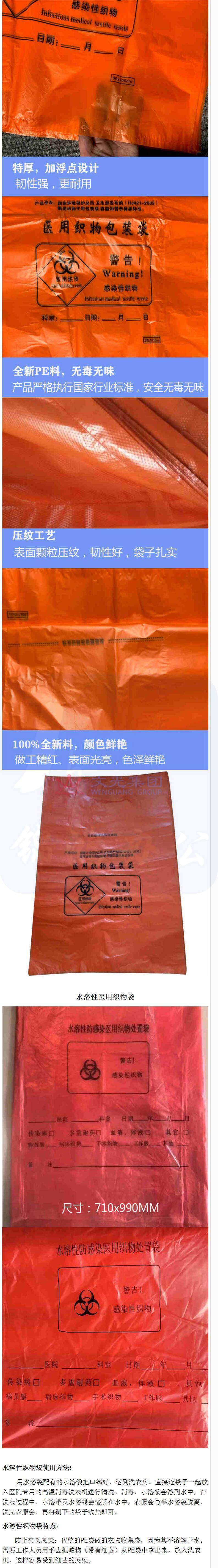 特厚 71*86水溶性垃圾袋 织物袋 红色废物收纳袋 20个/包 货号:YC