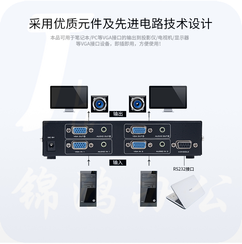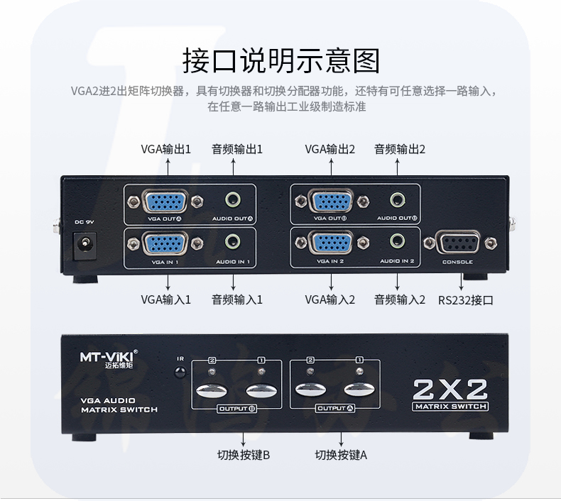 迈拓维矩MT-VT212 vga矩阵切换器音频视频2进2出高清监控矩阵切换器
