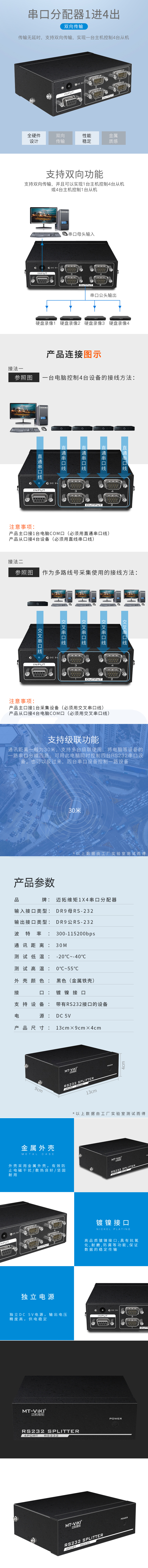 迈拓维矩 RS232串口分配器1进4出支持双向 级联 MT-RS104