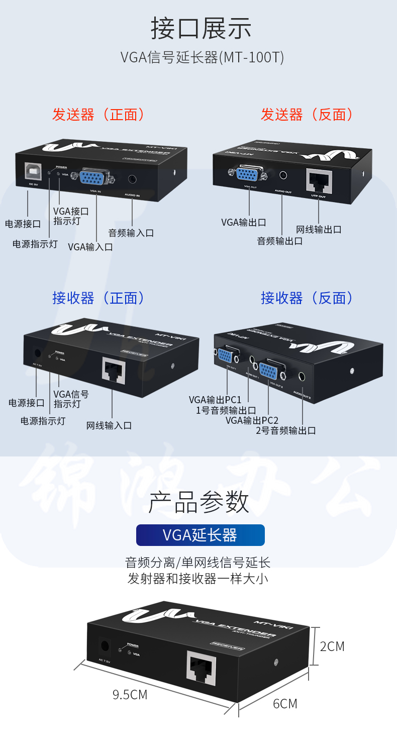 迈拓维矩MT-100T 网线转vga延长器100米网口rj45网络延伸传输信号放大器