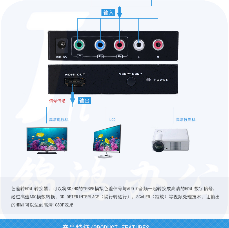 迈拓维矩 MT-SH312 分量/色差转HDMI高清转换器 XBOX转音视频同步
