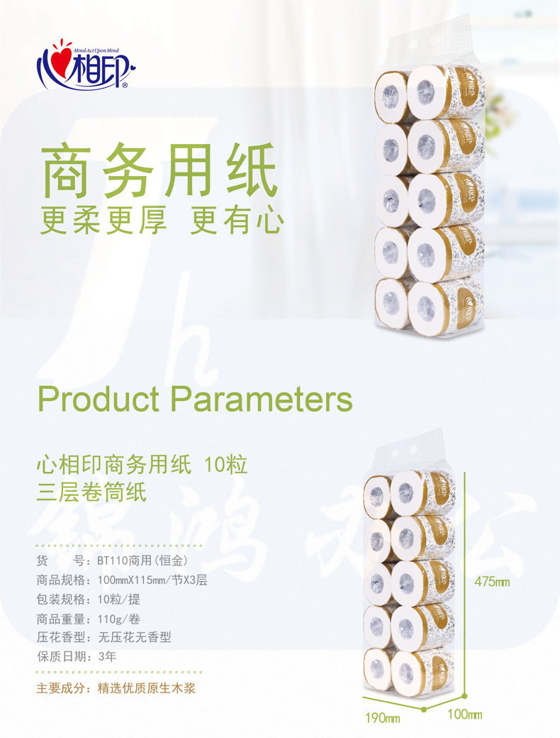 心相印 卷纸BT110 3层110g 10卷/提 卷筒纸 卫生纸 厕纸