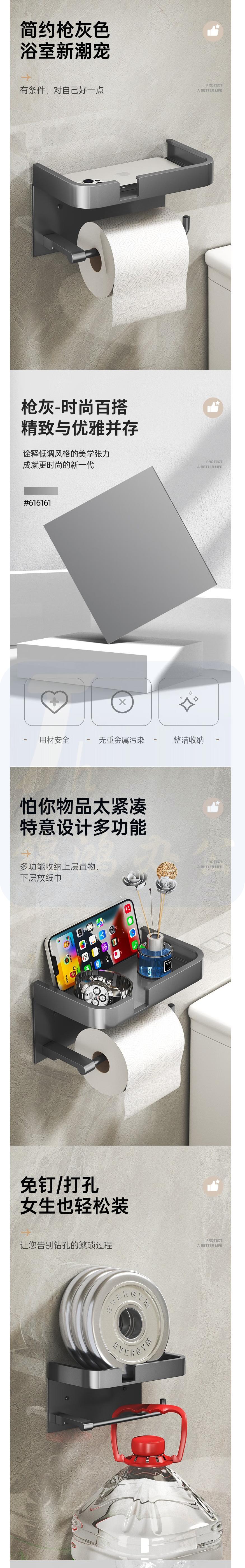 卫生间厕纸盒 免打孔厕所抽纸盒 枪灰色 货号:JC