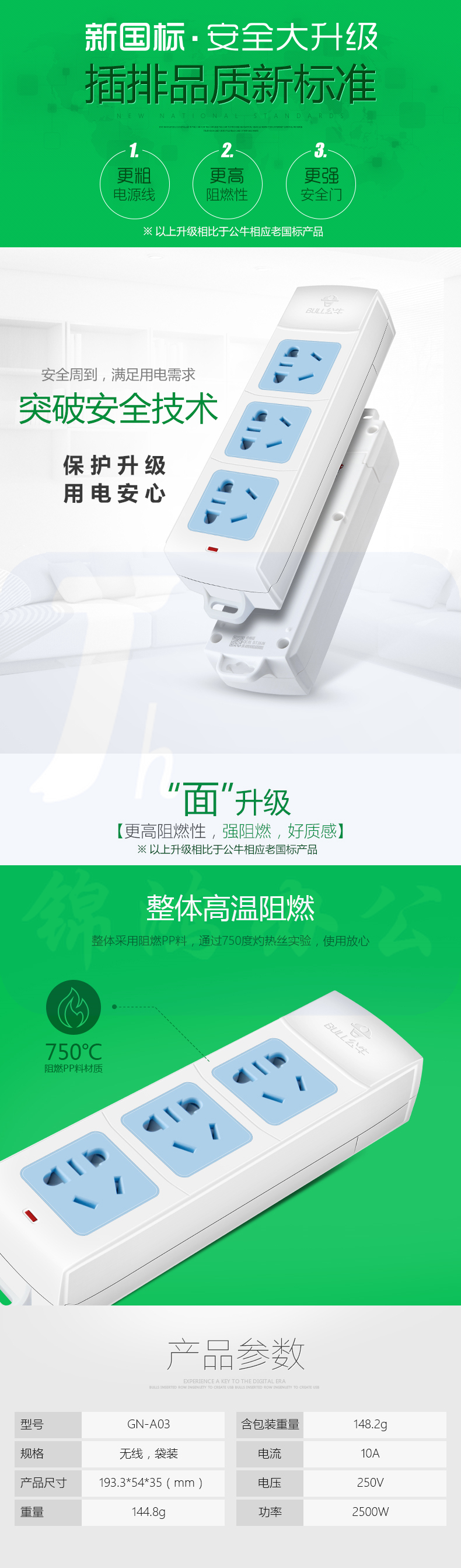 公牛 GN-A03 3位无线插排插座/插线板/插排/(自配电源线和插头)