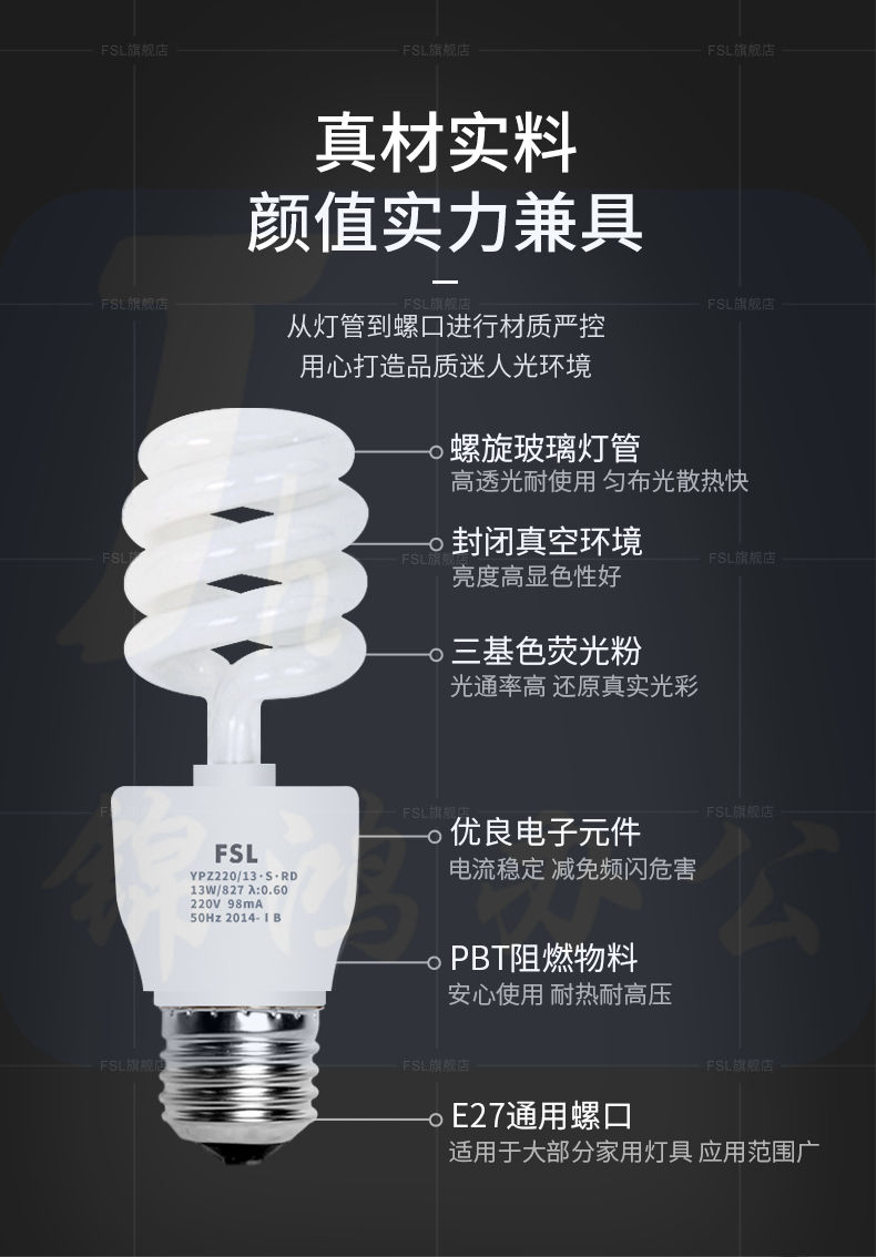 佛山照明 18W节能灯螺旋三基色荧光灯节能灯E27螺口白光
