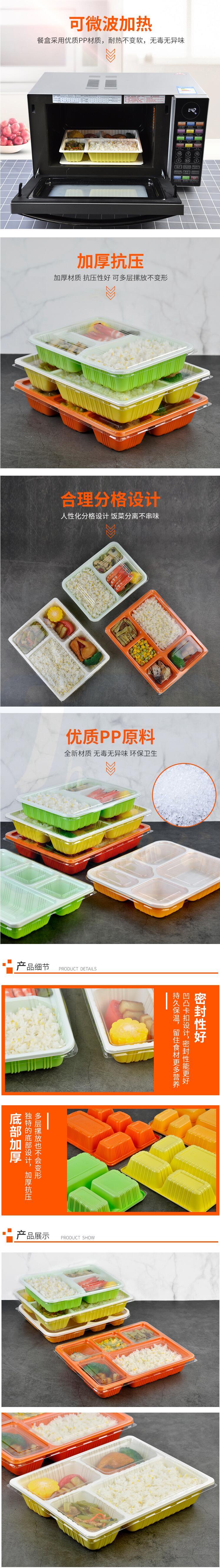 一次性餐盒五格分格便当盒长方形饭盒 桔白色 800个/箱