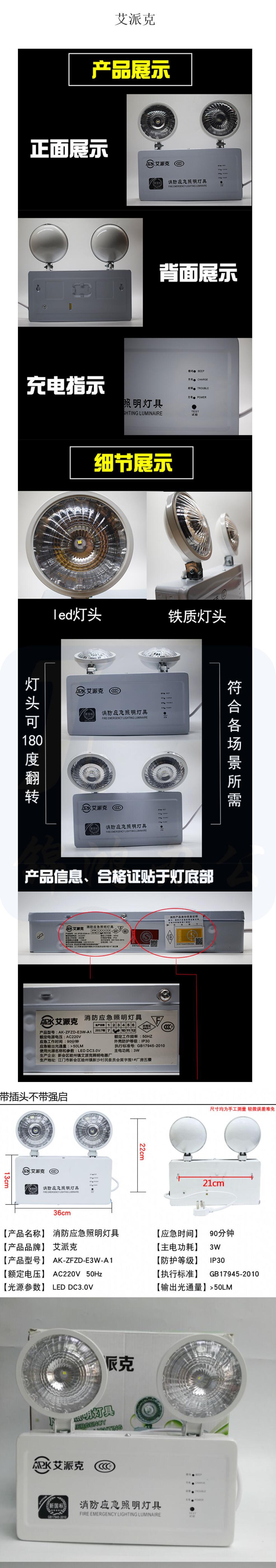 艾派克 应急灯二合一双头应急照明灯疏散停电安全出口指示牌照明