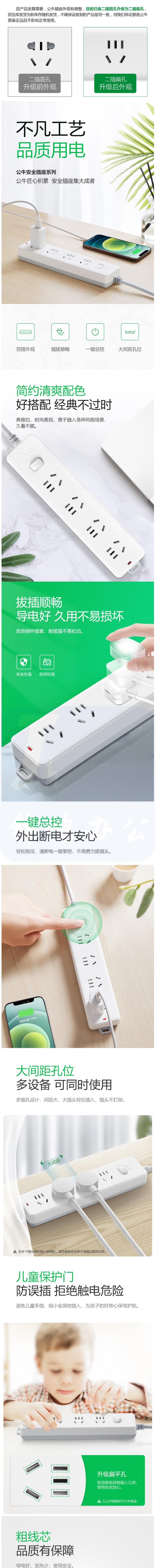 公牛GN-410 4位总控1.8米多位插座 接线板插排