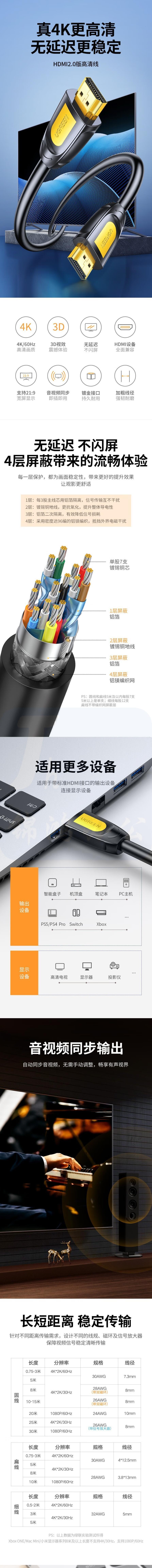 绿联 HDMI线2.0版 4K数字高清线 1米 10106