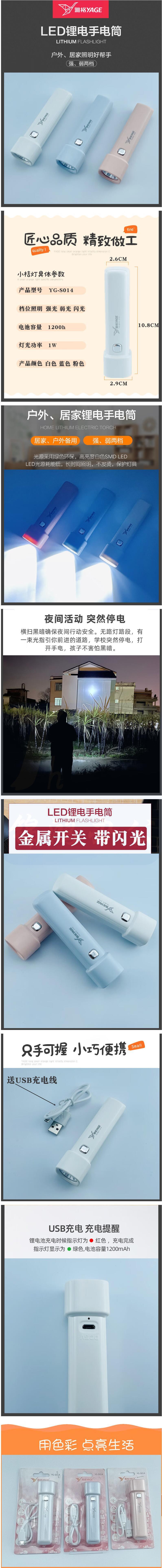 雅格 儿童手电筒 可充电 S014 货号:LJ