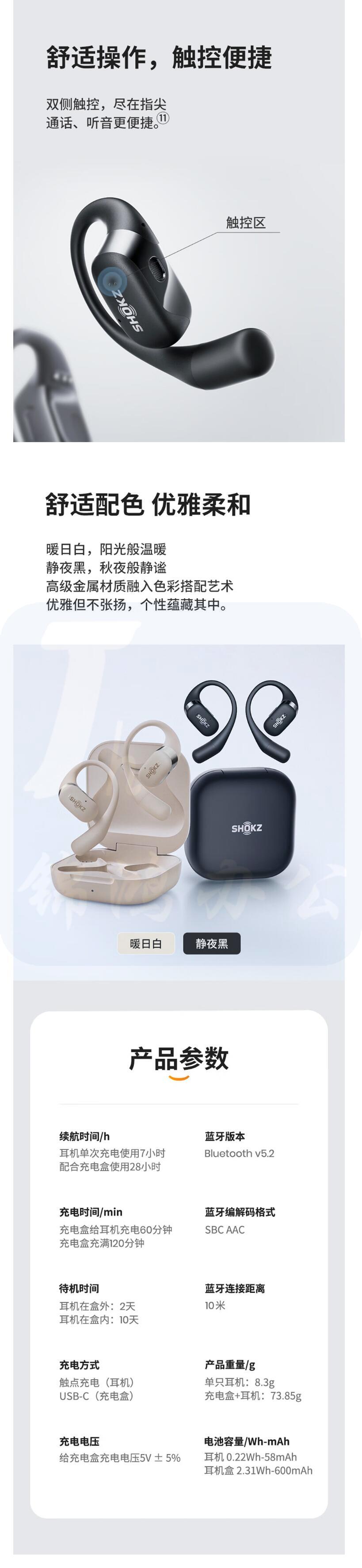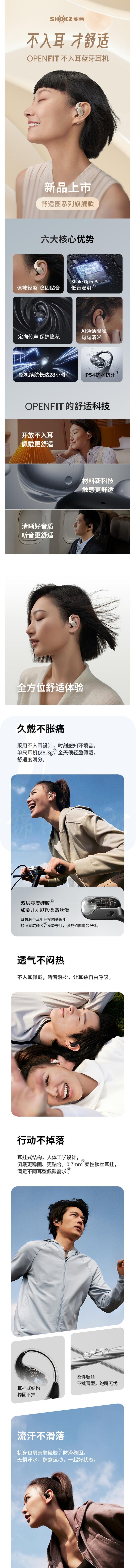 韶音(SHOKZ)舒适圈OpenFit开放式蓝牙耳机不入耳运动跑步长续航通话降噪T910 静夜黑