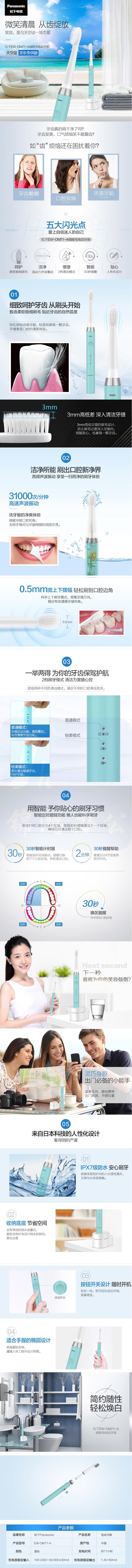 松下 EW-DM71 电动牙刷成人 声波振动 两种清洁模式 底座式设计 极细软毛 EW-DM71-A