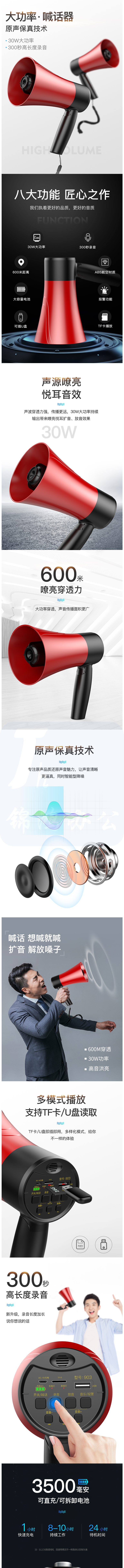 雅兰仕 903录音喇叭扬声器手喊话器 黑红色