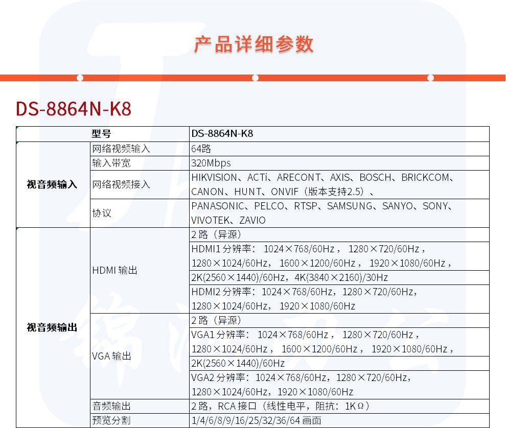 海康威视 DS-8864N-K8系列监控硬盘录像机64路NVR网络主机8盘位支持4K高清多路回放