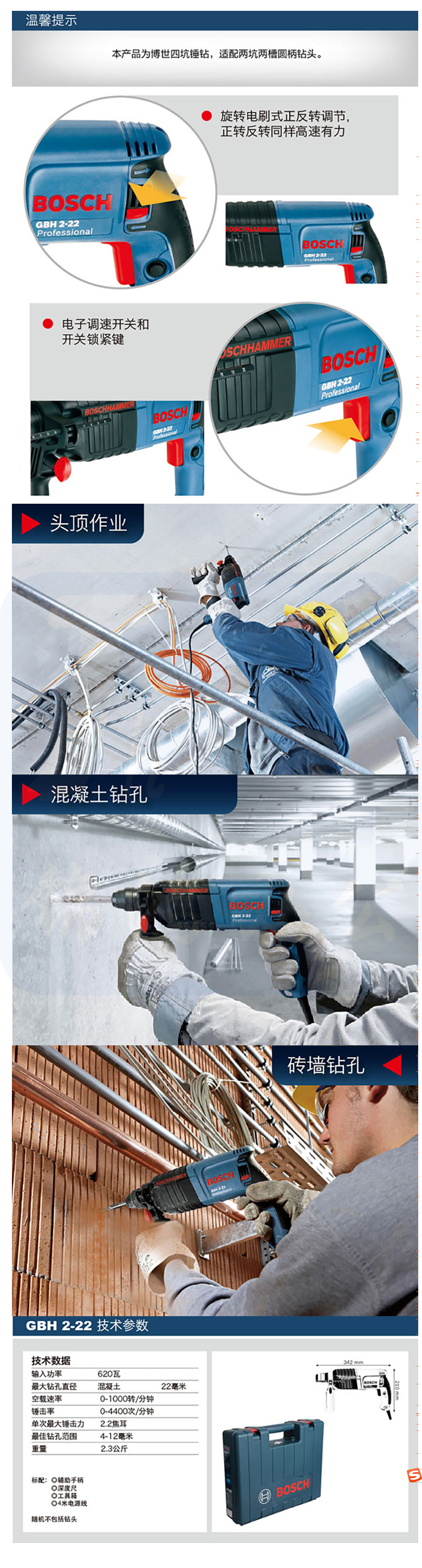 博世博世(Bosch)GBH 2-22电锤(锤钻两用)(620W)
