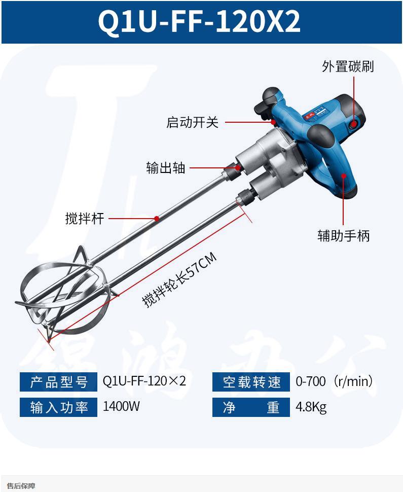 东成 QIU-FF120*2 搅拌机腻子涂料油漆混凝土水泥搅拌器(900W)