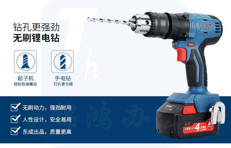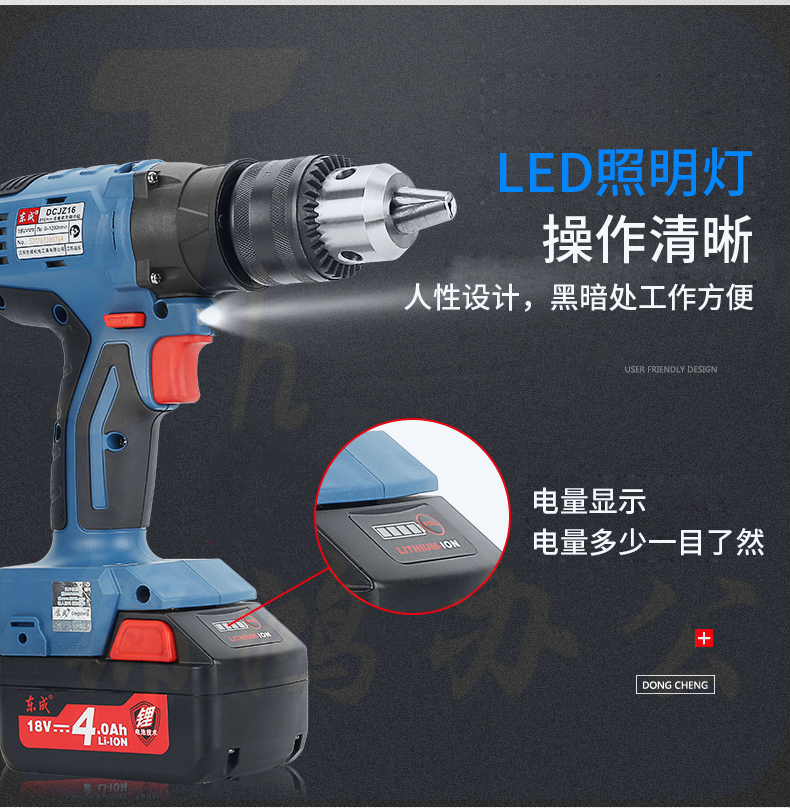 东成 充电式无刷电钻无刷充电式起子机大功率电动螺丝刀DCJZ16(E型)18v 双电锂电 4台/件