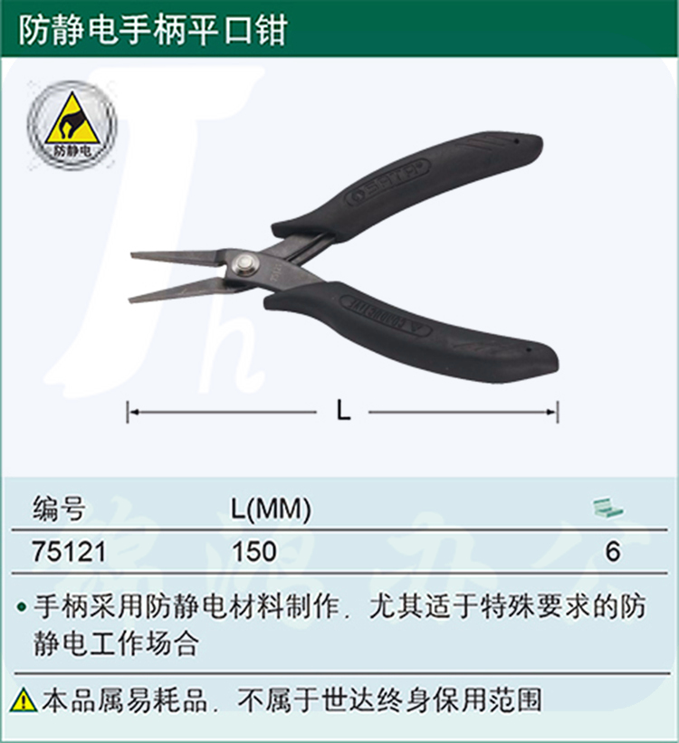 世达(SATA)防静电手柄平口钳5"货号75121