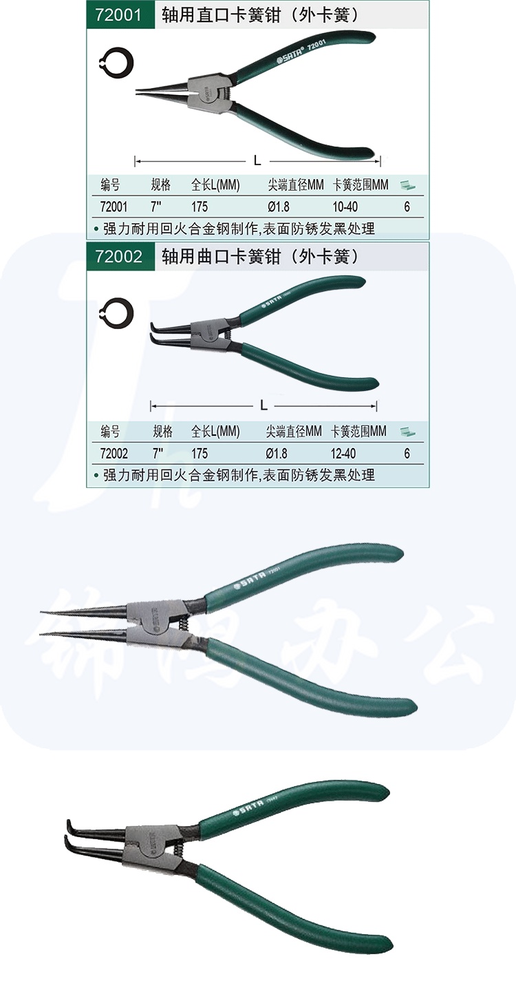 世达(SATA)轴用直口卡簧钳7"货号 72001