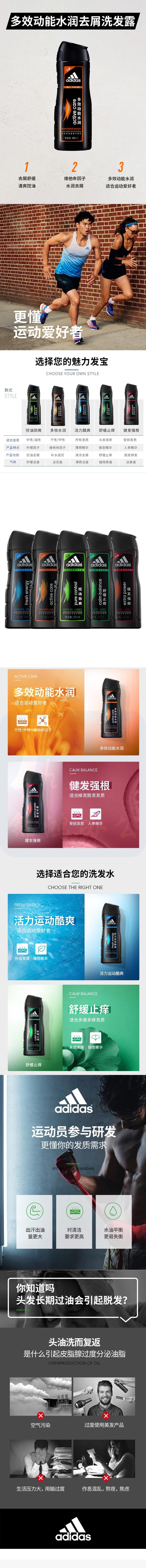 阿迪达斯 男士多效动能水润去屑洗发露400ml 控油劲爽洗发水