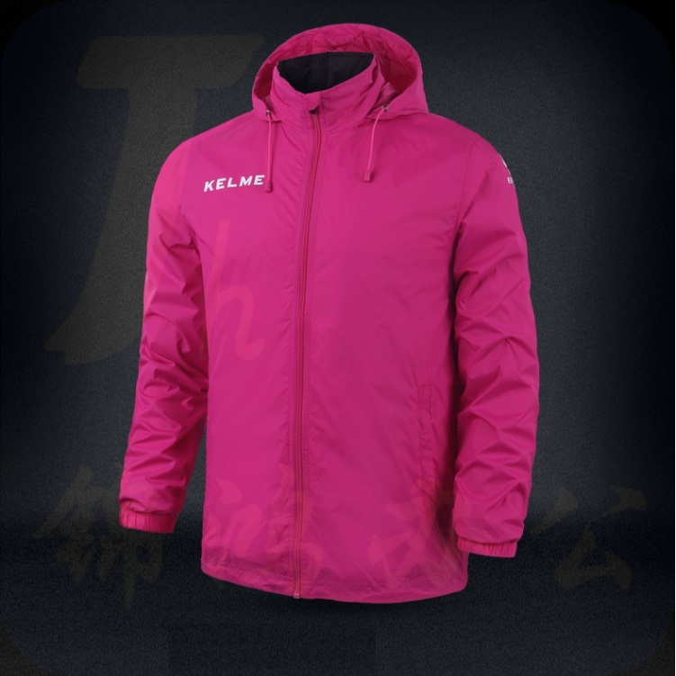 KELME卡尔美儿童运动风雨衣户外防风衣防水连帽足球训练服外套K15S606-1 玫红