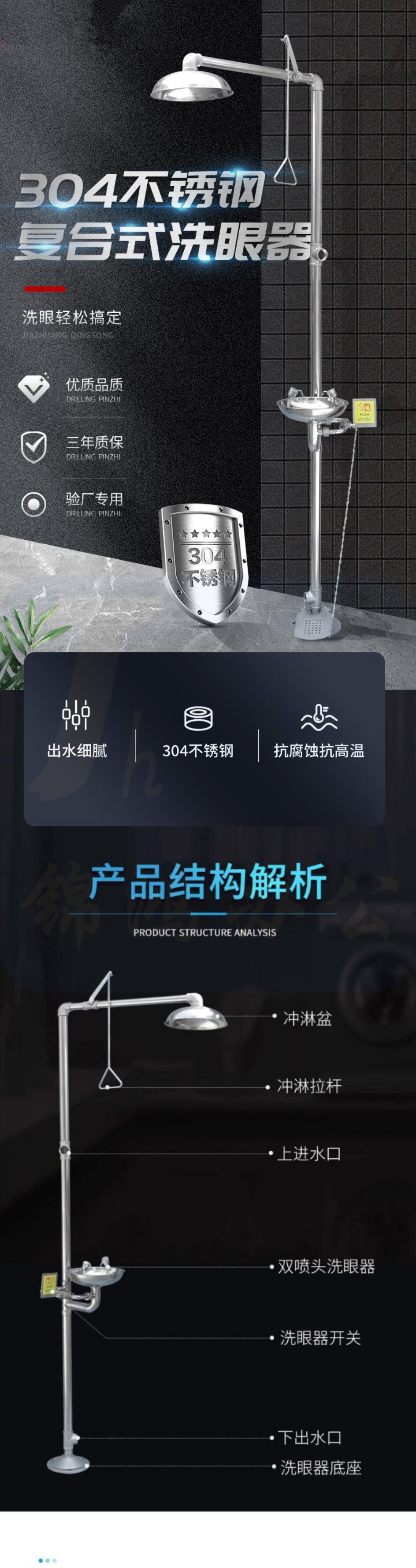 洗眼器 冲淋洗眼器 304不锈钢洗眼器双口 不锈钢双进水款
